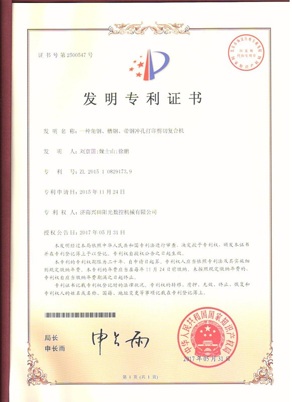 近年來,公司在徐鵬總經理的帶領下,迎難而上、攻堅克難,突破了多項科技難關,例如,主要應用于鋼結構、鐵塔加工、工程機械和汽車、船舶制造領域的專機設備——YJCX系列數控槽鋼角鋼帶鋼沖孔剪切生產線,集兩個發(fā)明專利于一身,以其加工質量好、生產效率高,最大化的節(jié)約了勞動力和加工不同型材等優(yōu)越特性,贏得了客戶的廣泛關注。該設備將沖孔、打字、剪切高度集合于一體,不僅在槽鋼、角鋼的縱向實現數控來保證沖孔的間距,而且在槽鋼的三面和角鋼的兩翼也采用了數控,這樣就實現了槽鋼三面和角鋼兩翼的多準距沖孔。縮短了輔助工作時間,提高了工作效率。