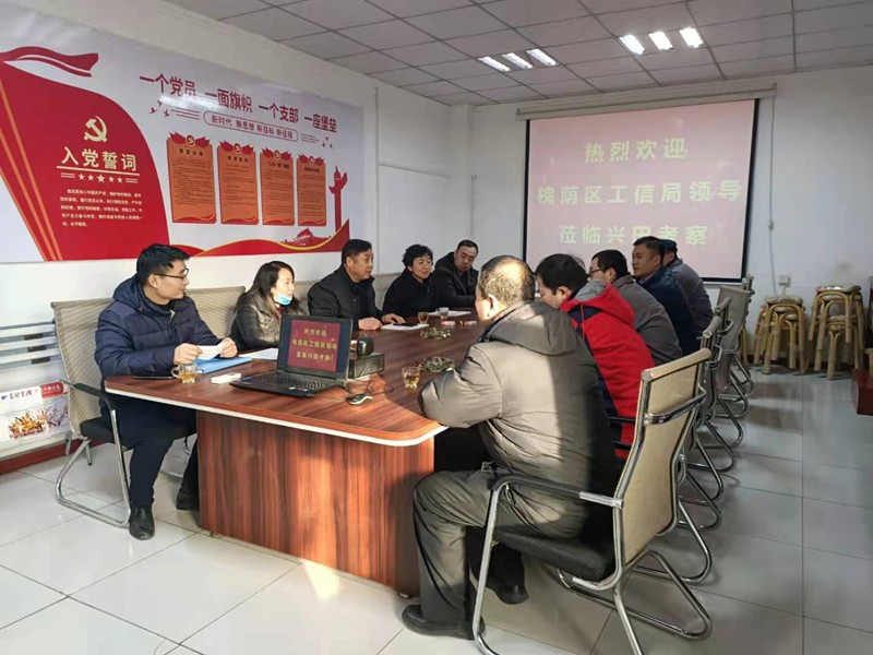 113日下午,槐蔭區工信局惠健副局長、任成濤科長和第三方安全專家,在玉清湖街道黨建工作辦公室副主任李偉偉、玉清湖街道辦事處經濟發展中心王鯤、潘輝的陪同下,蒞臨公司進行安全檢查。公司總經理徐鵬、董事會秘書兼辦公室主任王德華、黨支部書記兼生產副總孔祥健熱情接待了惠健副局長一行