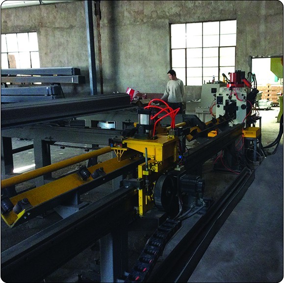 本生產線適用于電力、通訊、金具、立體車庫、電梯制造、空調制造等領域規格較小的角鋼型材的雙肢邊同時沖孔和自動定長切斷作業,可通過更換模具來實現鉚釘孔、長圓孔、異型孔的一次性制孔成型。